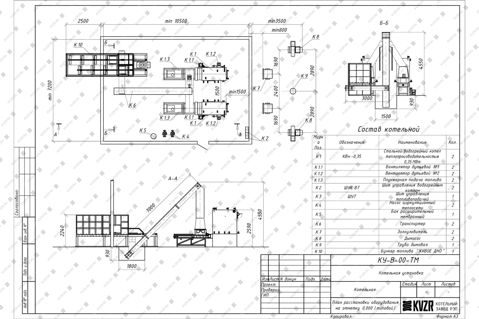 Монтаж водогрейного котла на опилках 400 кВт и вспомогательного оборудования в котельной должно производиться в соответствии с проектом и учетом требований СП 89.13330. 2016 «Котельные установки. Актуализированная редакция СНиП II-35-76» и «Правил устройства и безопасной эксплуатации паровых котлов с давлением пара не более 0,07 МПа (0,7 кгс/см2), водогрейных котлов и водоподогревателей с температурой нагрева воды не выше 388 К (115 С). Правильный монтаж котла – залог его надежной и долгой работы.