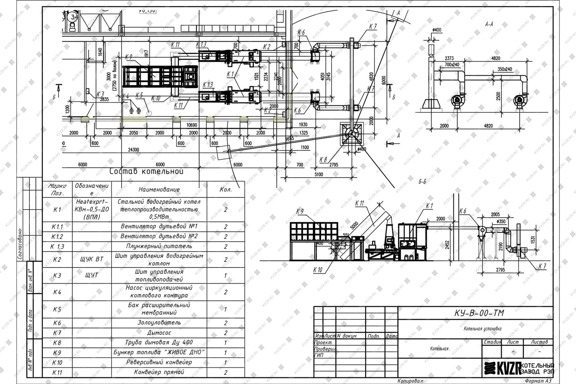 Чтобы правильно подключить котел 400 кВт на опилках в котельной необходимо оставить проемы для обслуживания оборудования во время эксплуатации. На представленной здесь схеме указаны их минимальные размеры. Кроме того, в данной примерной схеме монтажа водогрейных котлов и оборудования указан перечень минимально необходимого вспомогательного оборудования для правильной работы котла.